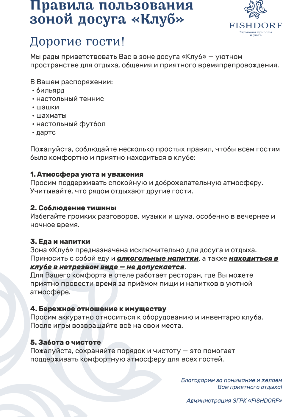 В нашем клубе вы можете приятно провести время за следующими развлечениями: